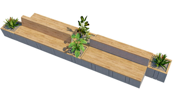 Enhance your outdoor spaces with this Modular Wooden Concrete Bench Planter 3D Model,Designed with a clean contemporary aesthetic, this modular seating unit combines warm wooden slats with solid concrete bases and integrated planters, making it perfect for urban landscapes, public parks, plazas, commercial projects, and residential outdoor areas.