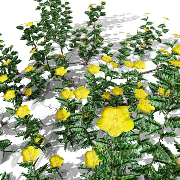 Capture the rugged beauty of the Arabian Peninsula with this high-fidelity 3D rendition of Tribulus omanense. Known as the National Flower of the UAE, this desert shrub is essential for creating authentic arid environments, Middle Eastern landscapes, and xeriscaping visualizations.