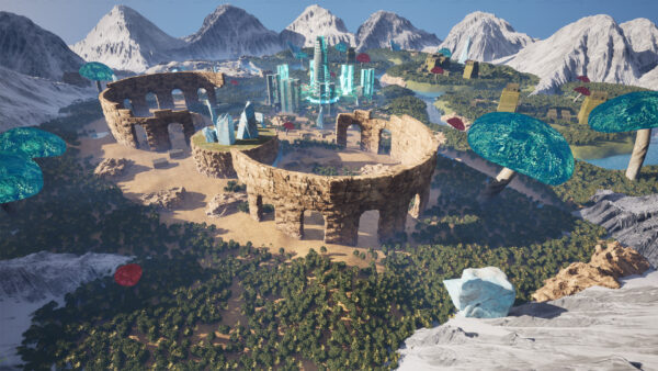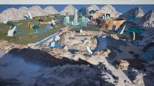 Dive into EcoCraft: Elysian Core, a colossal, pre-built game environment and modular asset kit designed for AAA-quality projects in unreal engine. This top-down landscape seamlessly blends breathtaking realistic greenery and snow-capped mountains with high-tech Cyber-Fantasy architecture and massive Ancient Ruins.