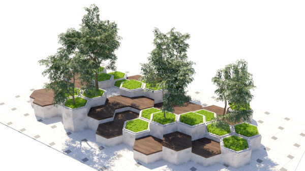– Modular Design: The hexagonal units are designed to be tileable and reconfigurable, allowing you to create custom layouts ranging from small islands to large-scale parklet installations.
