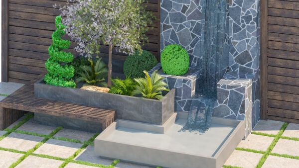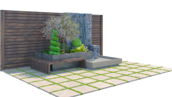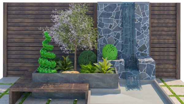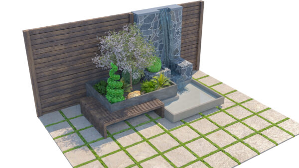 Perfect for architects, designers, and 3D artists looking to enhance outdoor scenes with a serene and premium garden setup.