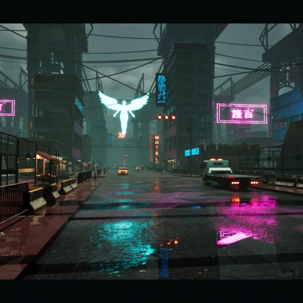 • Interactive Blueprints: Includes “smart” assets like flickering neon signs, rotatable security cameras, and automated doors.