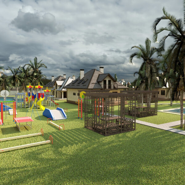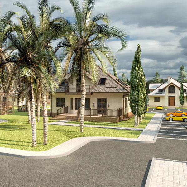 Complete Mini-Community: The model includes a clustered arrangement of multiple detached villas/houses , providing a complete neighborhood setting.