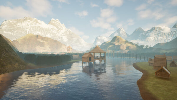 Explore this stunning, detailed medieval Nordic village nestled in a breathtaking mountainous landscape. This environment is meticulously crafted to bring your fantasy or historical games to life with its immersive and serene setting.